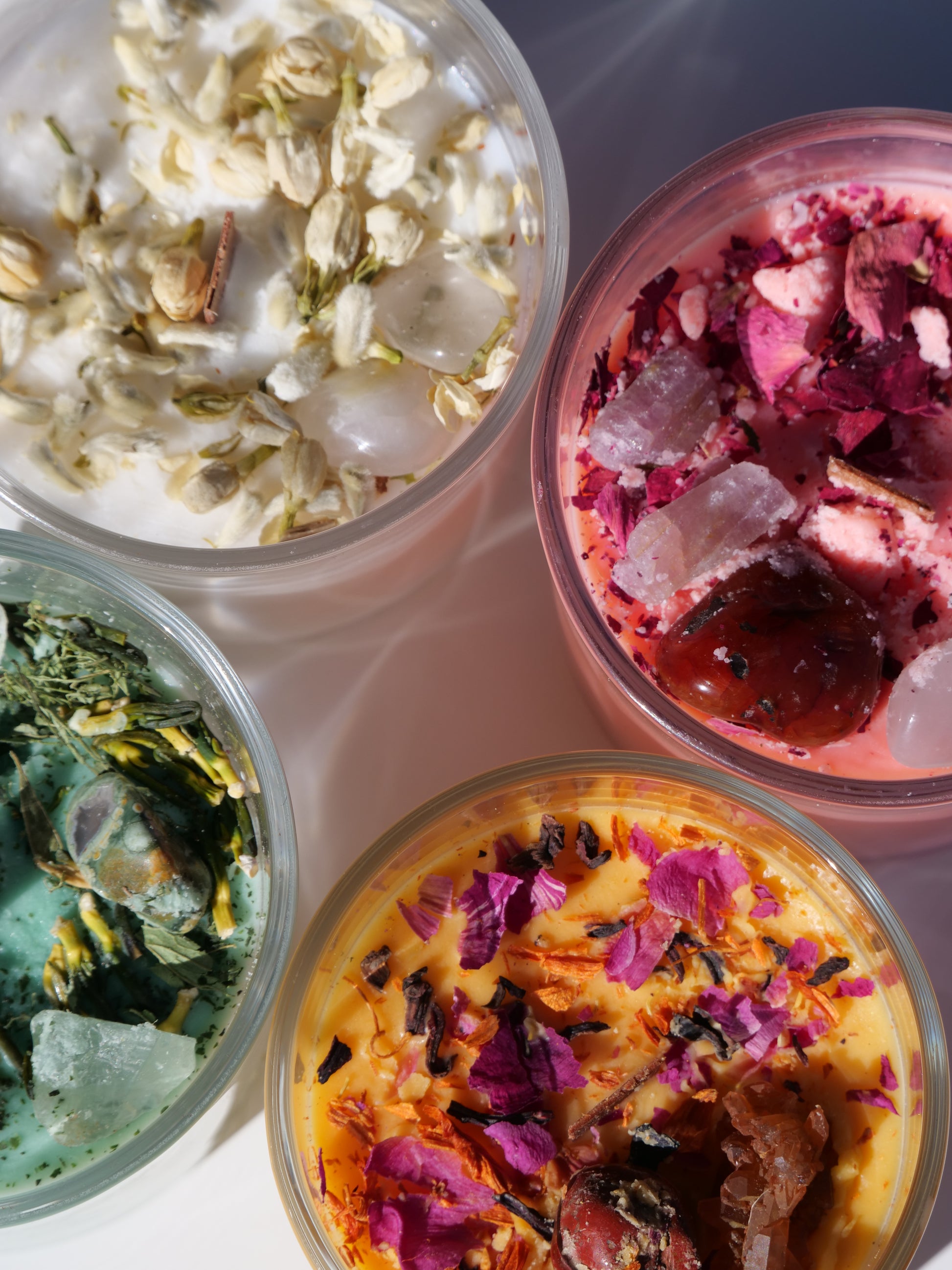 Each crystal is handpicked, cleansed and charged with intention and healing energies. Every Soulful Flames candle provides its own positive spiritual energy and healing properties in relation to which emotions you want to seek or embrace.